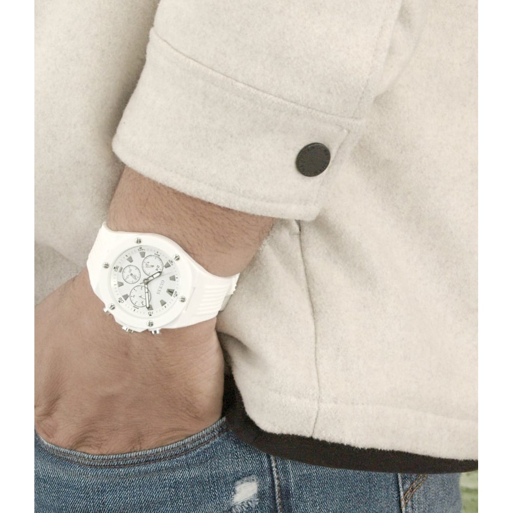 Enfilez cette montre homme GUESS avec prestance et élégance. Le boitier en céramique affiche un diamètre oversize. Le bracelet en silicone épouse vos poignets avec délicatesse. Ce garde-temps a été conçu pour les hommes stylés et élégants.